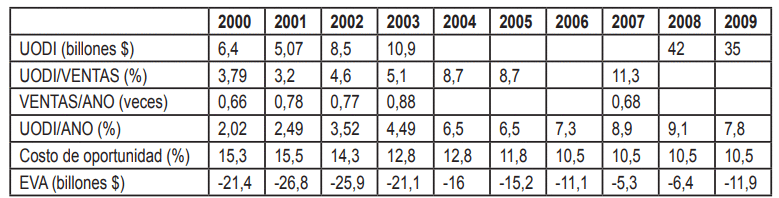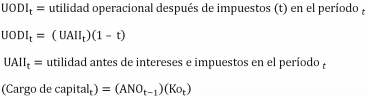 además, el rendimiento del activo neto operacional y el costo de capital son