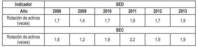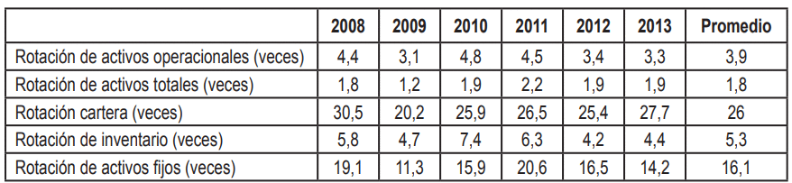 la celeridad con que rotan los activos: totales, operacionales, fijos, cartera e