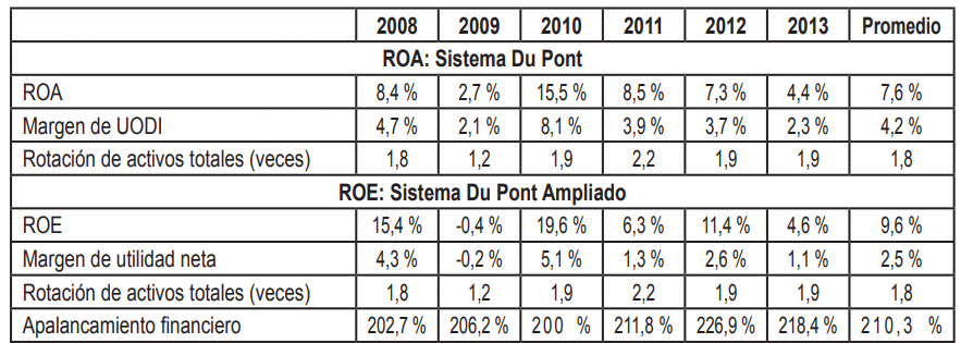 determinada por la eficiencia y la eficacia y el apalancamiento financiero,