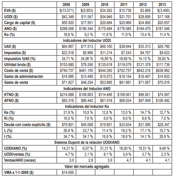 Como indicador de gestión del valor se toma el valor económico agregado