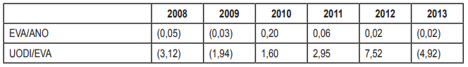 valor. La tendencia del EVA -en alza los tres primeros años y en caída en