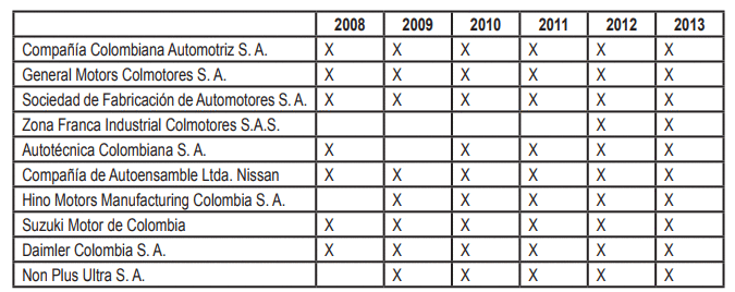 Nota: La X significa los años en que cada empresa se tuvo en cuenta en la investigación (entre 2008 y 2014).