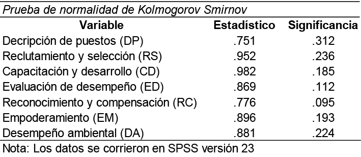 En esta investigación se consideran seis variables independientes: descripción de puestos “verde”, reclutamiento y selección “verde”, capacitación y desarrollo “verde”, reconocimiento y compensación “verde”, evaluación de desempeño “verde” y empoderamiento “verde”.