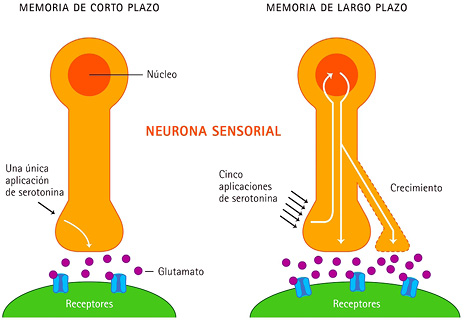 Con los descubrimientos descritos anteriormente, el grupo de Kandel [1, 26, 29] encontró que los cambios celulares que acompañan la sensibilización de largo plazo en Aplysia eran similares a los cambios que sustentan la memoria de largo plazo en el cerebro de los mamíferos: la memoria de largo plazo exige la síntesis de nuevas proteínas y la síntesis de nuevas proteínas es el proceso que favorece la formación de cambios estructurales a nivel neuronal, es decir la formación de nuevas terminales sinápticas.