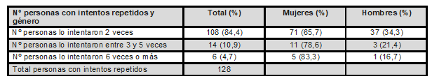Tabla 3. Número de personas y número de intentos repetidos (reintentos)