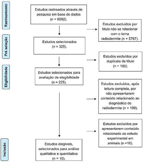 Figura 1. Fluxograma da seleção dos estudos sobre diagnóstico de radiodermite.