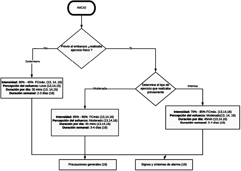 Figura 1. Flujograma de clasificación para la toma de decisión frente a la intervención del ejercicio físico en la mujer embarazada