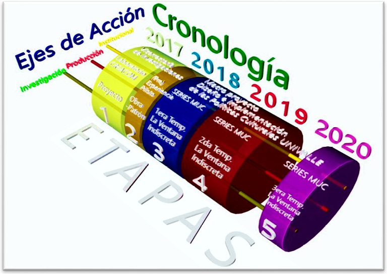 Como supervisor de las series MUCs bajo la dirección del docente y para ese momento decano de la FAI, José Hleap Borrero, abanderado de las políticas culturales en Univalle, y con el acompañamiento del docente Jorge Caicedo como director de la serie radial; llevé a cabo la coordinación de la producción general de las series y específicamente la dirección de la serie audiovisual. Por supuesto mi trabajo no se limitó meramente a la producción, sino también como venía desempeñándome desde el proyecto de investigación y en la temporada uno de las series MUCs, llevé a cabo la función de coordinador de las tareas investigativas y la producción. En la necesidad de cumplir los objetivos de un proyecto exigente la valoración de los tiempos limitó la producción realista del equipo al no compaginarse con las dinámicas administrativas y con las dilaciones debidas a los compromisos académicos y personales de sus integrantes. Lo que se puede identificar como un inconveniente que al dificultar las entregas de tareas y el cumplimento de actividades generó atraso general y un ambiente de discusión permanente de los cronogramas. Por ello, se buscó compaginar el esquema de producción bajando los propósitos, reestructurando los objetivos, para rescatar lo más importante y ejecutar menos actividades privilegiando la calidad de las obras. Propuesta para implementar durante la tercera temporada, que ante el cambio administrativo quedó allí.