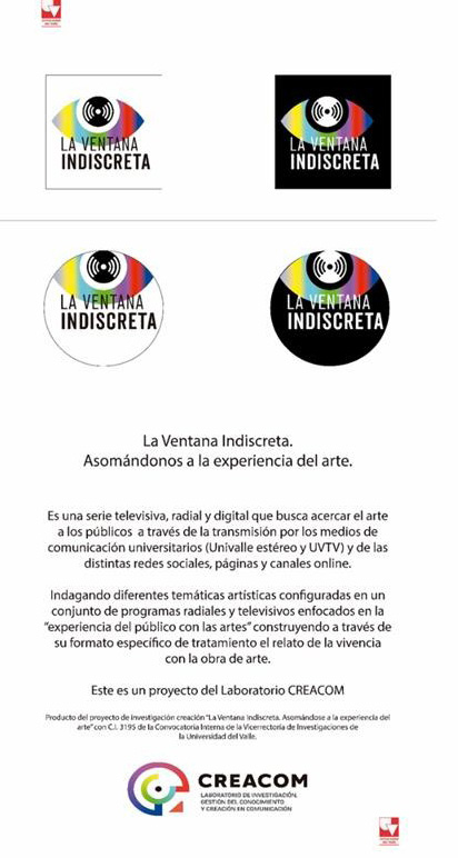 This article aims to take a systematic look at the communicative process experienced in La ventana indiscreta, looking at the experience of art, this was a research-creation project that sought to constitute a creative space (the Laboratory of Creation in Knowledge Management and Social Innovation CREACOM) both as a pilot for an experimental series of TV and radio plays; This space allowed the articulation between the Faculty of Integrated Arts, its teaching, research and production in the arts of the University and the daily experience of the audiences of the region, with the mediation of technologies and communication strategies. Anchored to the project of Cultural Policies of the Universidad del Valle, it managed to be a transversal bet to its action axes from research to production and broadcasting in university media.