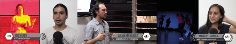 Entramos a diseñar, el programa Augusto Rivera, que se designó como la experiencia propia del proyecto para los componentes audiovisual y sonoro. Inicialmente, para esta experiencia que marcó un derrotero en la producción; se formó un equipo provisional pero profesional contando con David Moreno en la Cámara; La sonidista Angélica Rodas, quien también era la encargada del laboratorio de radio; Natalia Casas en la producción de campo; Julián Pasichana en la iluminación y gaffer, y asistente de Cámara. Los demás realizadores, quienes estaban viviendo con esta, una experiencia formativa también en técnica, desde el proyecto, ya que eran aun monitores de investigación, se dividían en roles de producción y realización. Con mi guía en la dirección general de la producción y audiovisual.